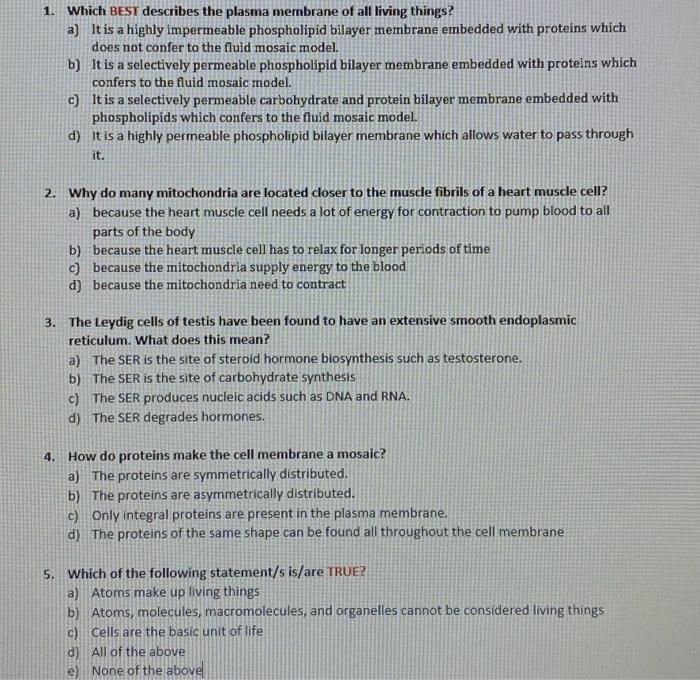 Solved 1 Which Best Describes The Plasma Membrane Of All Chegg Com