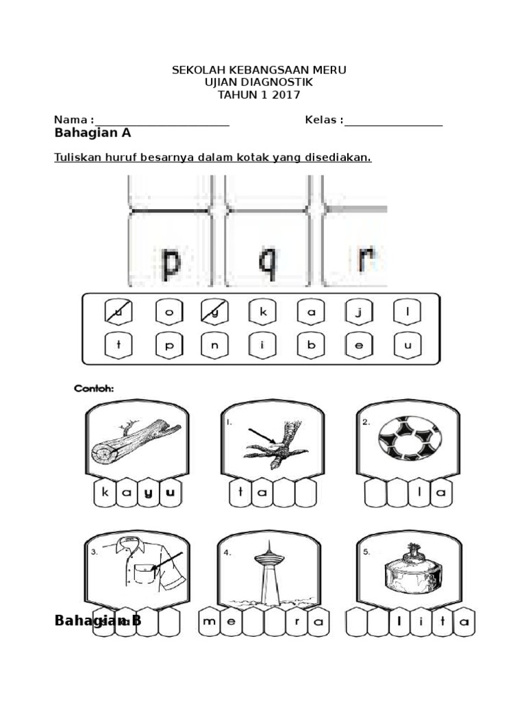 Contoh Soalan Ujian Diagnostik Tahun 1 2017